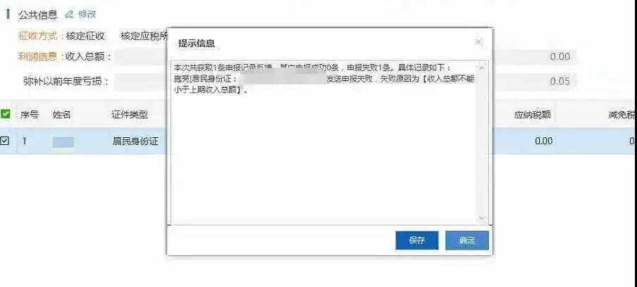 3 若反馈提示“收入总额不能小于上期总额”,点击确定即可。
