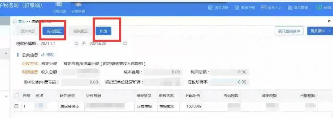 6 申报成功之后,若需修改,可以启动更正或者作废。