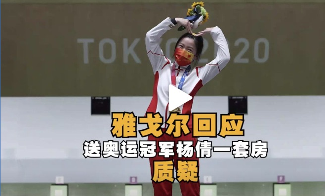 获得首金后,杨倩家乡宁波的雅戈尔集团随即宣布赠送杨倩一套房,原因是:她值得!!!但雅戈尔也因此被质疑炒作。7月27日,雅戈尔集团对被质疑炒作一事做出回应:相关负责人徐先生表示,公司此举并非炒作,因为房子已经售罄了,根本没有必要做这个宣传,赠与房子是出于真心。(来源:《每日经济新闻》)