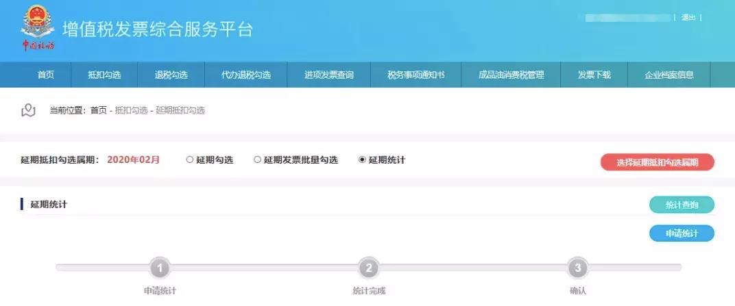 3、在申报期内需要使用“抵扣勾选统计”功能进行抵扣申请,并在抵扣申请处理完成后对抵扣统计表进行签名确认,完成签名确认后填写申报表进行申报。