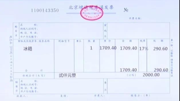 贷:主营业务收入——冰箱 1709.40