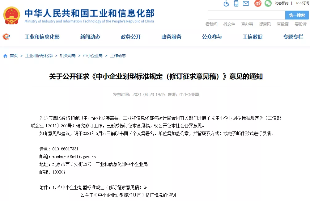 4月23日,工信部发布了《中小企业划型标准规定(修订征求意见稿)》,这次的修订主要集中在4点:修订了行业的分类、修订了划型的指标、建立了《划型标准》定期评估制度和增加定性标准。