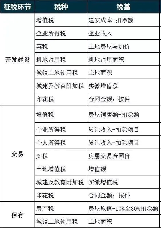 房地产税:是一个综合性概念,它包含了针对房地产所征收的所有税种,比如土地增值税、城镇土地使用税、耕地占用税、增值税、印花税、契税、个人所得税、公司所得税等等。