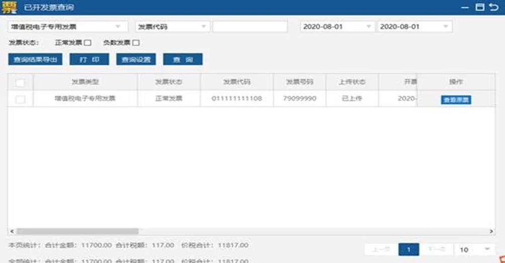 已开发票查询中,选择对应发票类型为增值税电子专用发票,查询后确认这里发票状态为已上传。