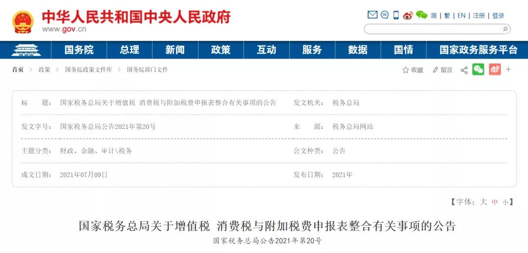 自2021年8月1日起,增值税、消费税分别与城市维护建设税、教育费附加、地方教育附加申报表整合,启用新的《增值税及附加税费申报表(小规模纳税人适用)》及其附列资料申报表。