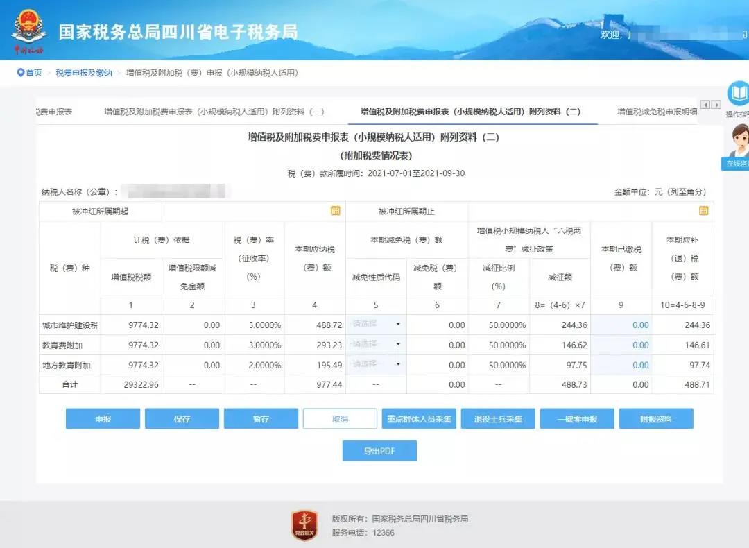 变化三:增加《增值税及附加税费申报表(小规模纳税人适用)附列资料(二)》(附加税费情况表)