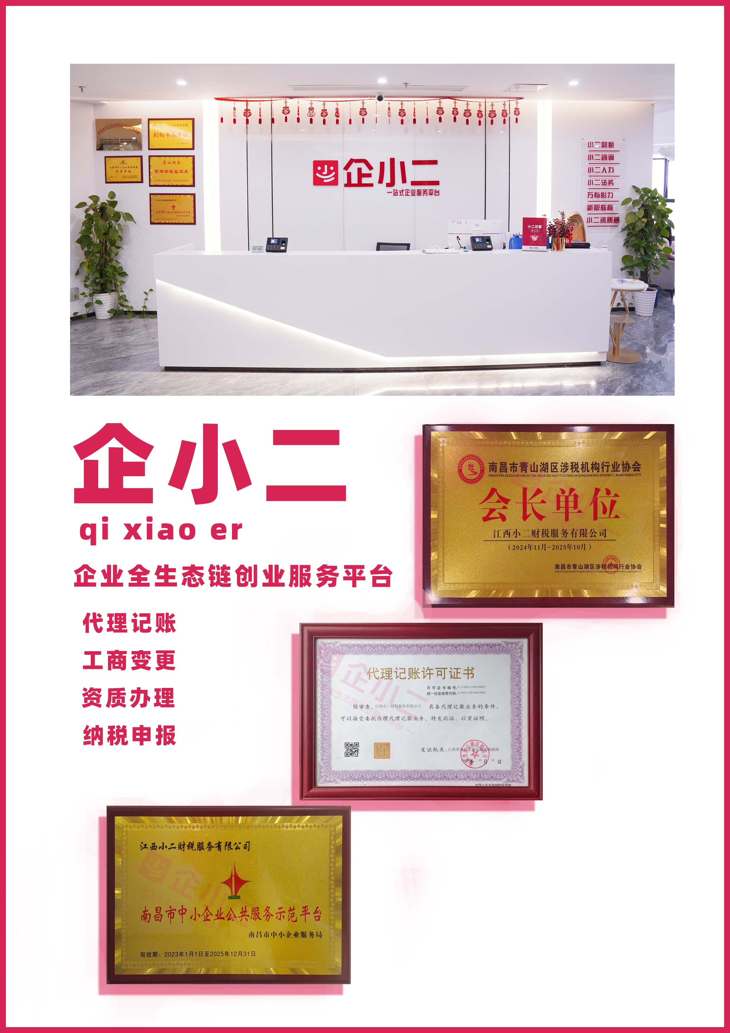 创业,是一场充满激情与挑战的冒险。当你怀揣着梦想,准备在南昌这片充满机遇的土地上大展拳脚时,公司注册却往往成为了拦路虎。繁琐的流程、复杂的材料准备、捉摸不透的政策法规,是不是让你感到焦头烂额,甚至心生退意?别担心,企小二集团作为公司注册代办专家,将为你一站式解决所有难题,让你的创业之路从一开始就畅通无阻!